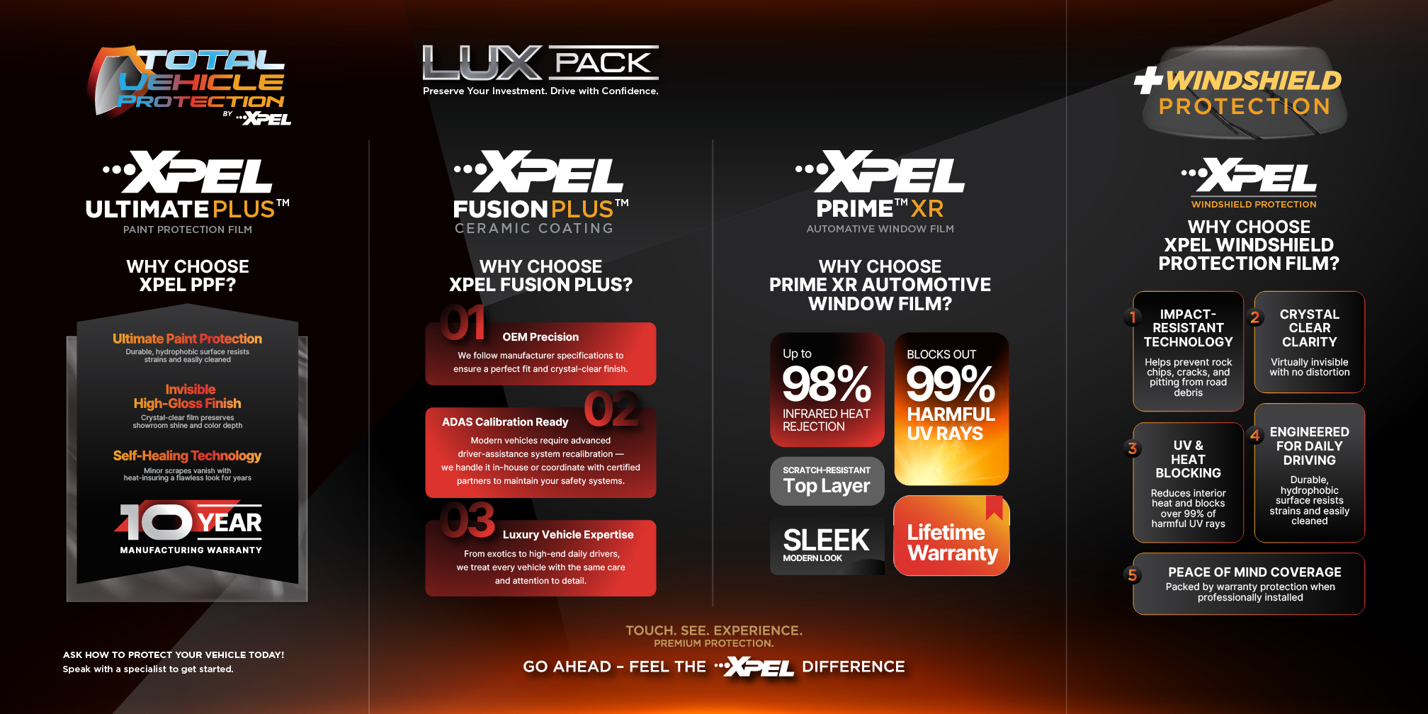 - Ultra-clear, distortion-free XPEL film for flawless vision
